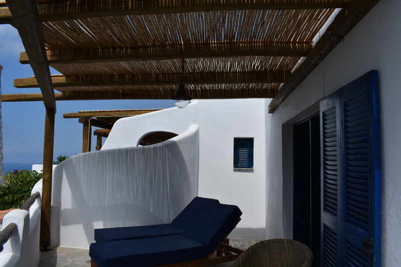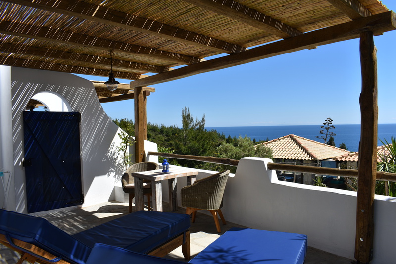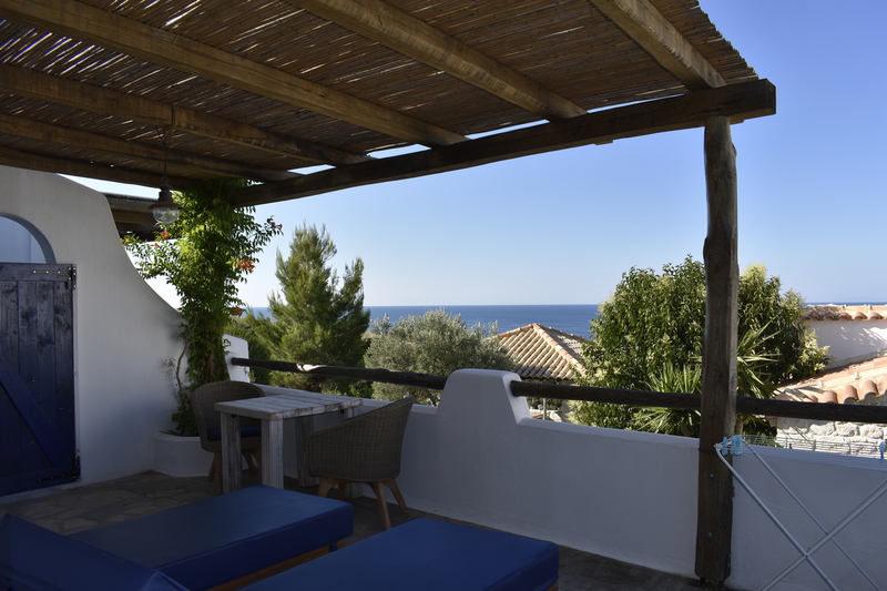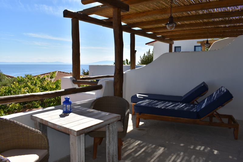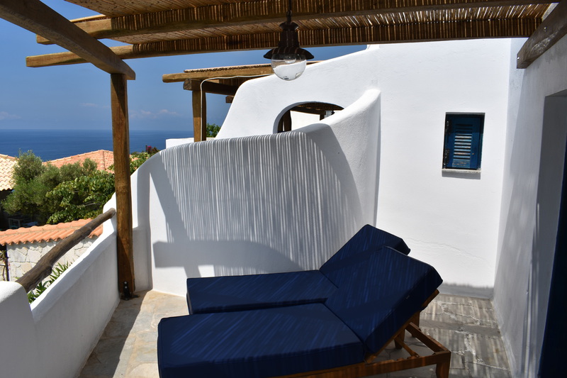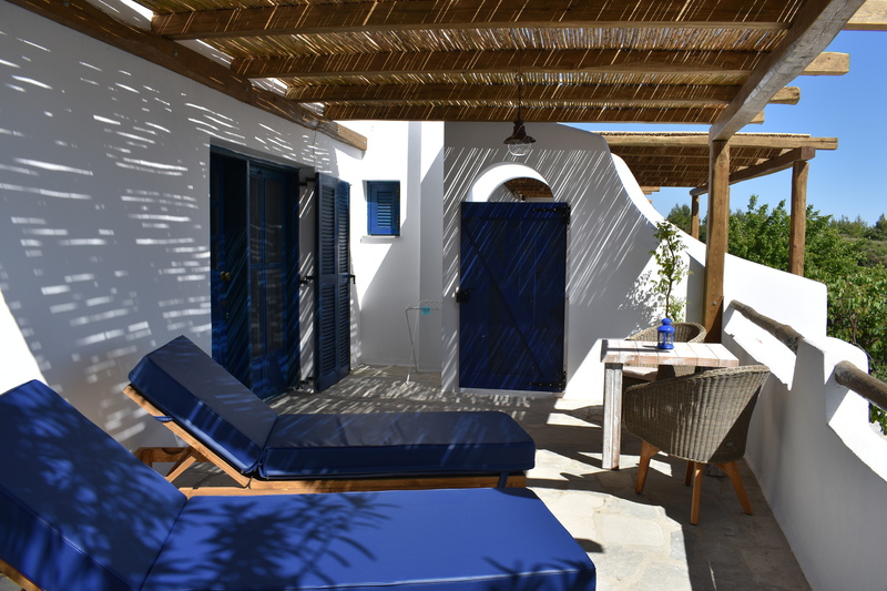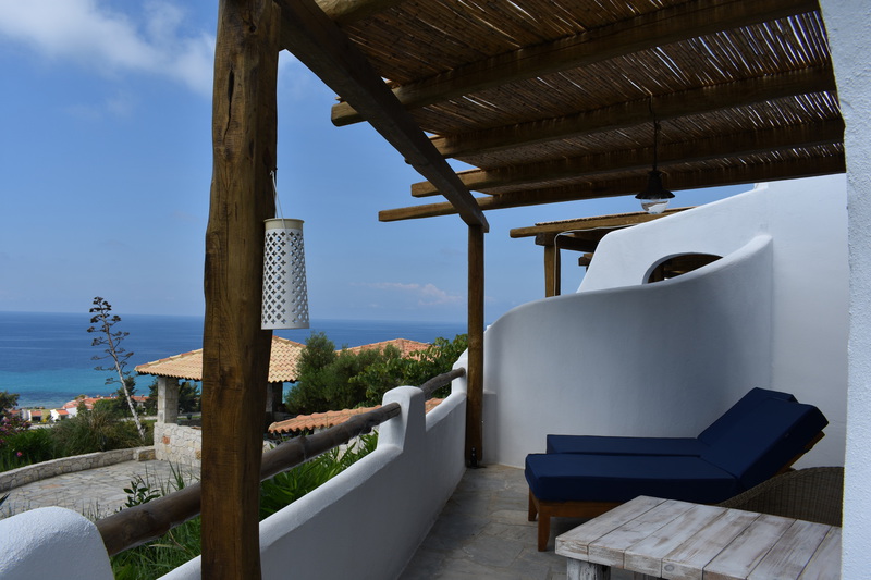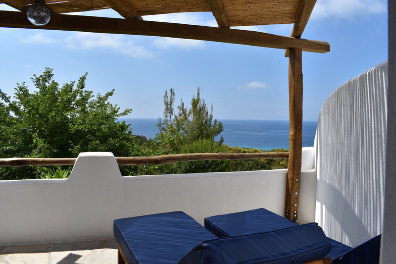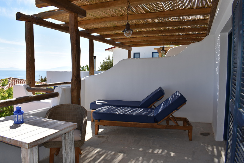 Alle unsere Studios haben eine Terrasse nach Süden mit Meerblick, bieten Privatsphäre und sind mit hochwertigen Sitzmöbeln & Sonnenliegen ausgestattet. Klimaanlage, Moskitonetze & Deckenventilatoren sorgen für ein angenehmes Raumklima.